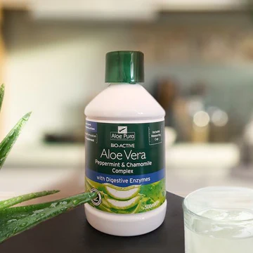 Aloe Pura Bio-Active Aloe Vera Juice is a unique, maximum strength formula combining whole leaf and unfiltered inner gel of Aloe vera with digestive enzymes, peppermint, and a specialized botanical blend. This product is formulated with minimal processing to maintain the plant's natural components and ensure high levels of natural activity, guaranteeing quality. It includes a unique botanical blend of Mentha Piperita (Peppermint), Chamomila recutita (Chamomile), Foeniculum vulgare (Fennel), and Bromelain (from Annas comosus), alongside Carica papaya (Papaya). The formula guarantees a unique blend of whole leaf and inner gel, with aloin removed, and is not reconstituted from powders. For directions, shake well and take 25ml once or twice daily, direct or mixed with water or fruit juice.