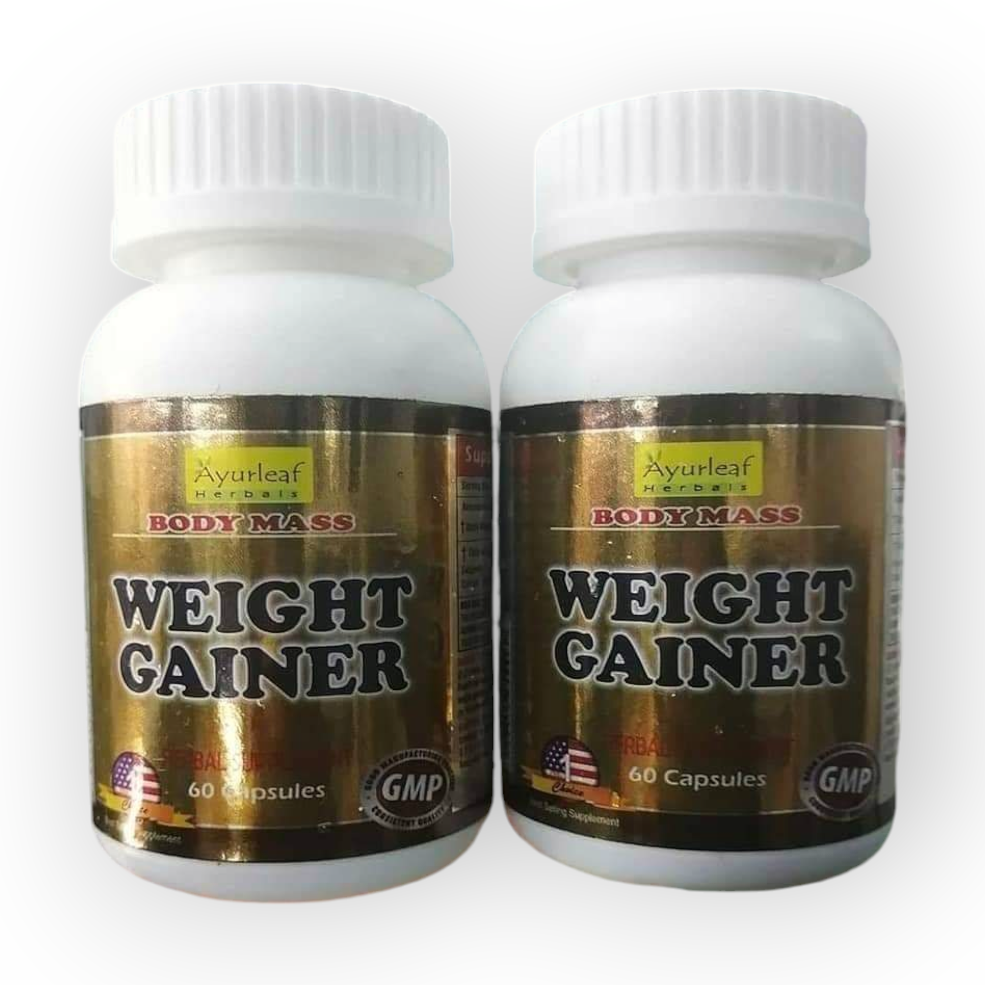 Ayurleaf Body Mass Weight Gainer is an herbal supplement formulated to promote weight gain in both men and women. Positioned as a safe and natural solution, it is intended for individuals struggling to gain weight. The formula is a herbal blend featuring traditional ingredients like Aswagandha, Gokshuru, Kaucha, Yastimadhu, Vidarikand, and Safed Musli. The primary benefit of the supplement is Appetite Enhancement, which may help increase overall calorie intake necessary for weight gain. The supplement aims to promote weight gain in a healthy way. The product is a Herbal Supplement. The bottle contains 60 Capsules. The recommended dosage is 1-2 capsules daily after meals. Consumers should remember that a healthy diet and exercise plan are crucial for healthy weight gain, and it is essential to consult a healthcare professional before starting any new supplement.