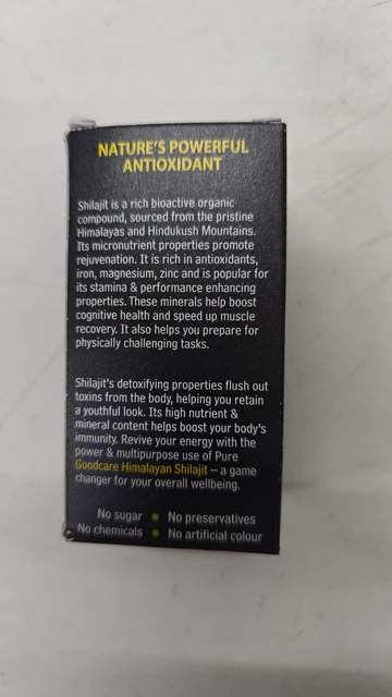 Boost your stamina and vitality with 100% pure GoodCare Himalayan Shilajit Capsules. This Authentic Ayurveda formulation is a well-known Rasayan and Powerful Vitalizer that helps fight off mental and physical fatigue. It is a great source of humic acid and iron, which directly helps prevent anemia by fulfilling iron deficiency in the blood and improving the hemoglobin count. Shilajit is an excellent blood cleanser that benefits the liver and kidney functionalities. Furthermore, it acts as an effective internal antiseptic agent, helping to protect the heart and reduce blood pressure. Sourced from the Himalayas, this bioactive organic compound is a powerful antioxidant that strengthens bones and muscles.