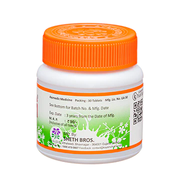Kayam Tablet is a renowned proprietary Ayurvedic medicine primarily used as an effective laxative to relieve chronic constipation and slow bowel movement. It is an effective and handy formula that improves gut motility and helps in the management of associated digestive impairments like acidity and gas. The tablet also addresses common issues such as flatulence and loss of appetite. The formula blends a synergistic mix of potent herbal ingredients including Senna leaves (Cassia angustifolia), which acts as a natural laxative to promote bowel movements; Nishoth (Trivrit); Mulethi (Licorice); Himej (Haritaki); Ajwain (Carom seeds), known for relieving gas and indigestion; Hing (Asafoetida); and Sunth (Dried Ginger). This unique blend ensures a gentle and effective cleansing experience. The recommended dosage is 1 to 2 tablets at bedtime with normal or lukewarm water as per requirement. Kayam Churna Powder is also available.