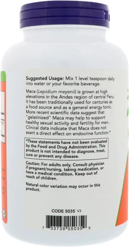 Maca (Lepidium meyenii) is grown at high elevations in the Andes region of central Peru. It has been traditionally used for centuries as a food source and as a general energy tonic.* More recent scientific data suggest that "gelatinized" maca may help to support healthy sexual activity and fertility for men.* Clinical data indicate that maca does not exert a direct effect on endocrine function.*