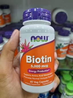 NOW Biotin 5,000 mcg Capsules are a high-potency dietary supplement providing a vital water-soluble B vitamin that is essential for normal growth and overall body function. Each serving delivers 5000 mcg of Biotin. Biotin plays a crucial role in gluconeogenesis, fatty acid synthesis, and the metabolism of certain amino acids, thereby supporting Energy Production and Amino Acid Metabolism. It also promotes Normal Immune Function. Furthermore, this supplement contributes to the health and strength of skin, hair, and nails. The product is a Vegetarian/Vegan supplement and is Non-GMO. Ingredients include Rice Flour and Hypromellose (cellulose capsule). For dosage, take 1 capsule daily with a meal. It is important to note that biotin may interfere with some blood test results, and it is for adults only.